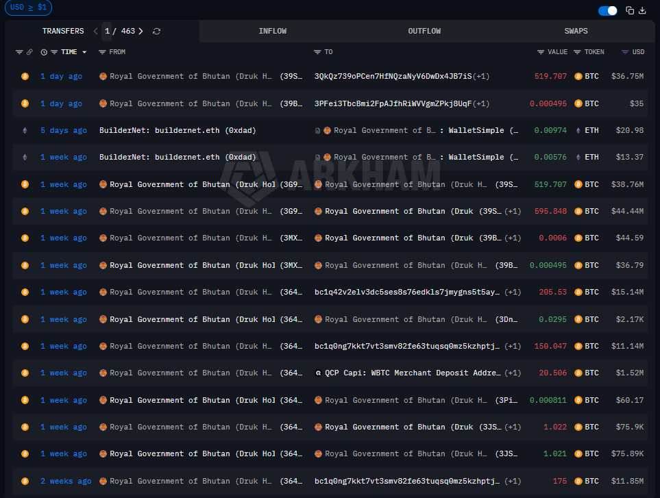 Bhutan has made another transfer of 500 Bitcoins to cryptocurrency exchanges. This is not the beginning or the end of a series of transactions that have seen the overall outflows for 2026 rise considerably. The data from Arkham Intelligence, shows that Bhutan have been moving funds in line with the management and liquidity trends. Bhutan has increased the rate of selling its state-owned Bitcoin holdings and has already moved $152 million worth of BTC in 2026.