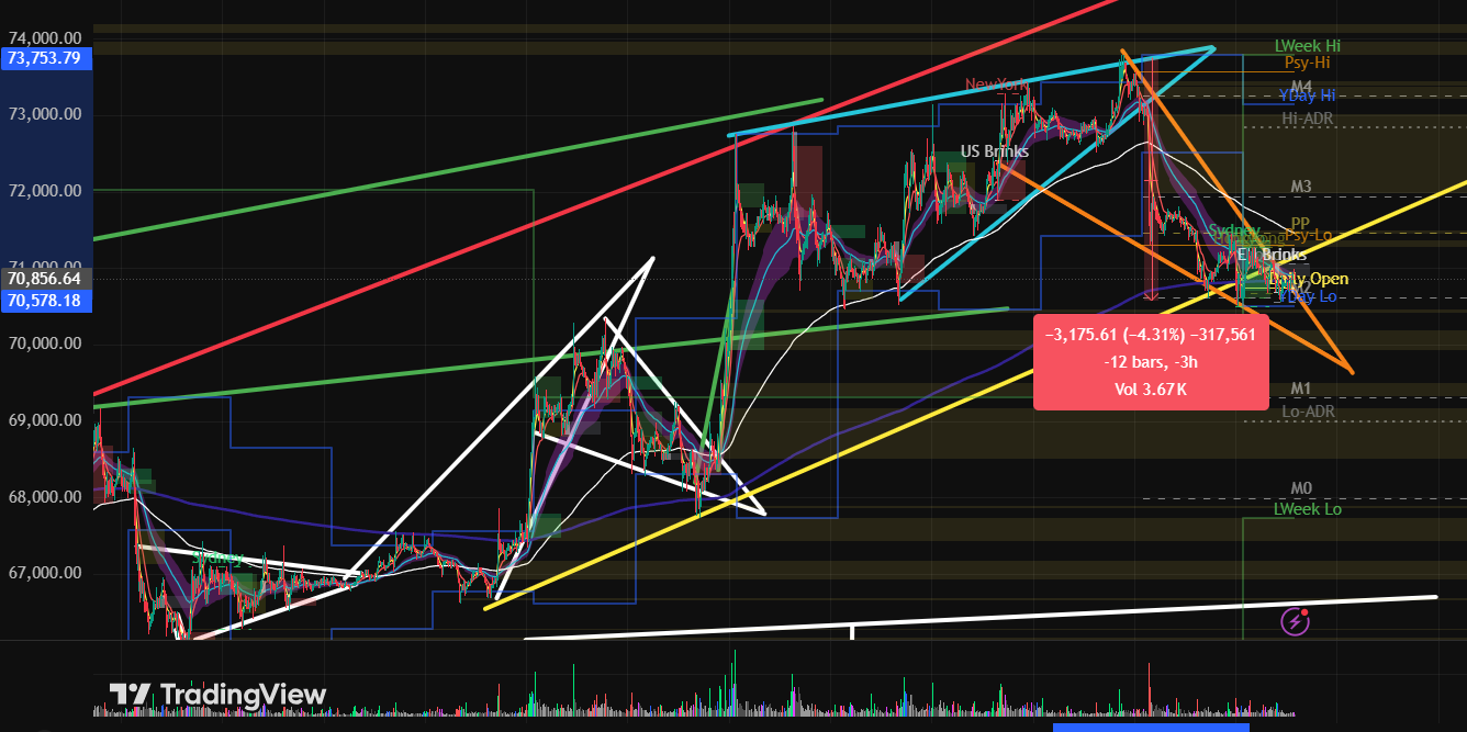 737k rejection confirmed. Now hovering 70.8k. Makers cooling off. Watch Lo-ADR and LWeekLo next. Stay sharp.