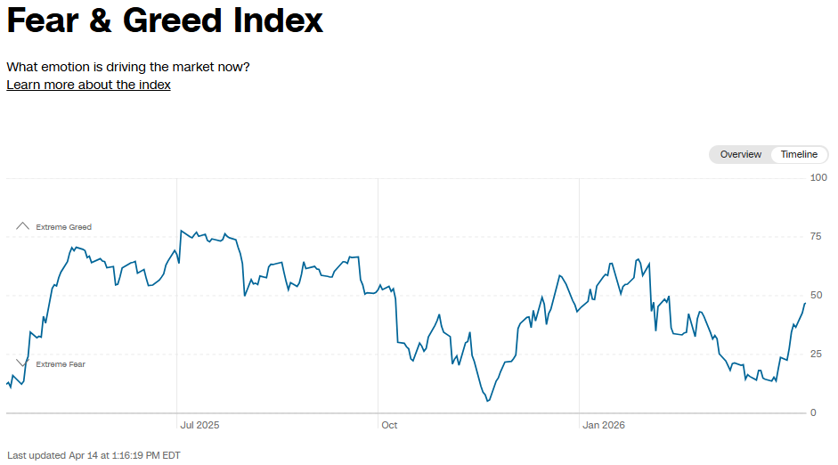 The sentiment was "Neutral" only during a quarter of the past year, with "Greed" barely present during less than a quarter.