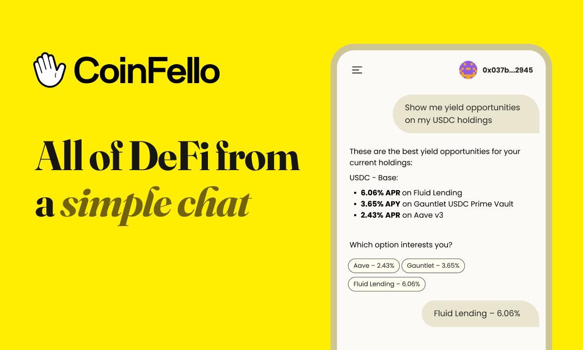 Previously available only in private alpha through waitlist access, CoinFello is now open to the public through its web application. The platform enables users to send tokens, swap assets, bridge across chains, and interact directly with decentralized protocols through a chat-based interface that translates plain language instructions into blockchain transactions.