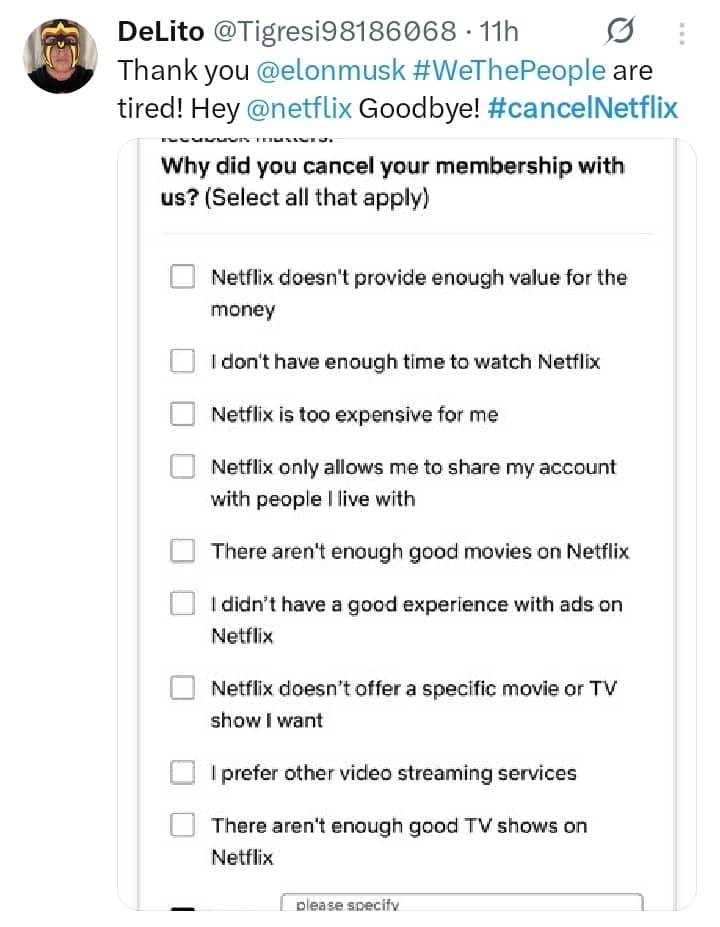 The boycott began on X (formerly Twitter) when Musk publicly supported the trending movement of American Netflix users. The X owner explicitly tweeted, “Cancel Netflix for the health of your kids”, while confirming that he too had cancelled his account.