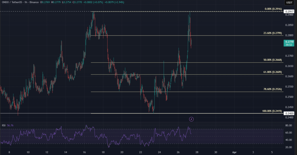 ONDO traded near $0.277 after rebounding from $0.242, where buyers stepped in and absorbed strong selling pressure. Consequently, the token rebuilt its short-term structure and signaled steady demand despite wider market hesitation.