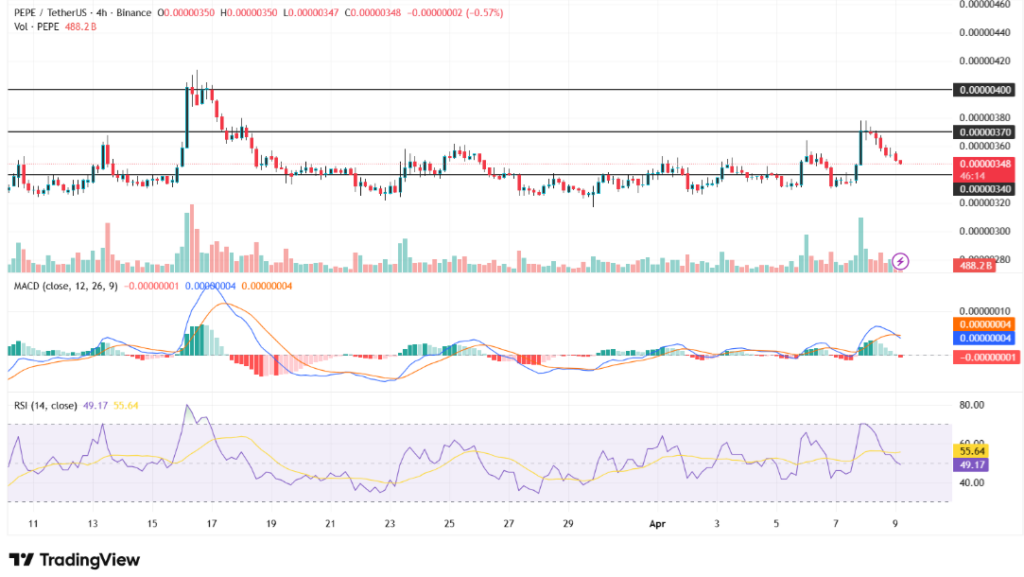 Immediate support stands near $0.00000340, a level that has held during recent pullbacks. However, a break below this zone could push prices toward $0.00000320 and $0.00000300. Additionally, a move above $0.00000370 may open the path toward $0.00000420 and possibly $0.00000440.