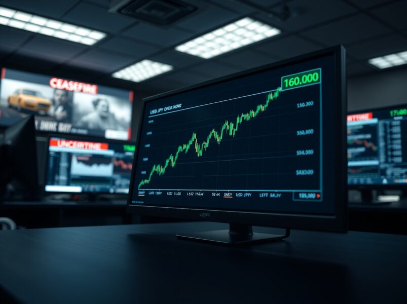 The USD/JPY currency pair is testing the psychologically critical 160.00 level, a threshold not seen in decades, as profound uncertainty surrounding a fragile geopolitical ceasefire agreement continues to exert severe downward pressure on the Japanese Yen. This dramatic move, observed in global forex markets, highlights the complex interplay between international diplomacy and monetary policy. Market participants are now closely watching for any potential intervention from Japanese authorities, a move that could trigger significant volatility across all asset classes.